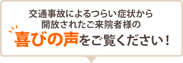 そういう方にこそ受けていただきたいのが、「1回目の施術から変化を感じる」と多くの方が声をそろえる、当院の交通事故施術です。